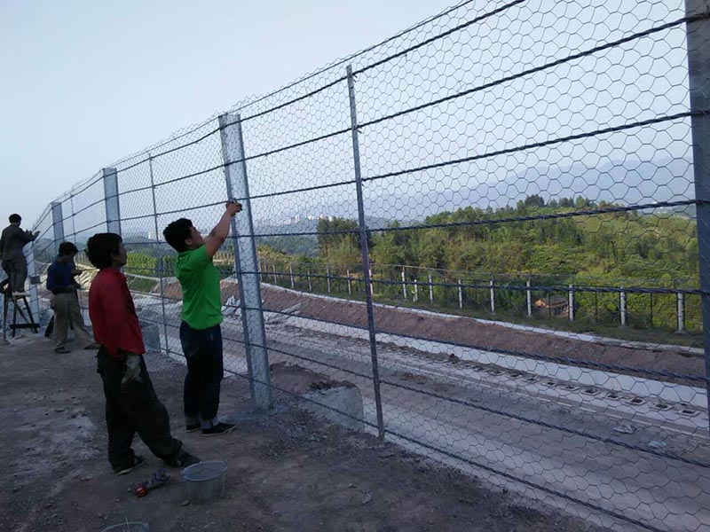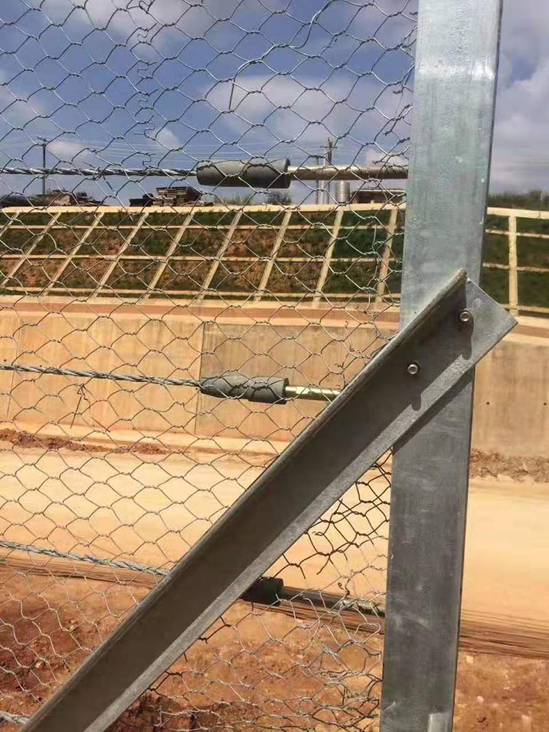 ⑴剛性防護網由型鋼立柱、雙絞六邊形鋼絲網、鋼絞線及立柱基礎組成。防護網立柱下設置全埋式獨立基礎。基礎采用人工垂直掏槽方式施工。