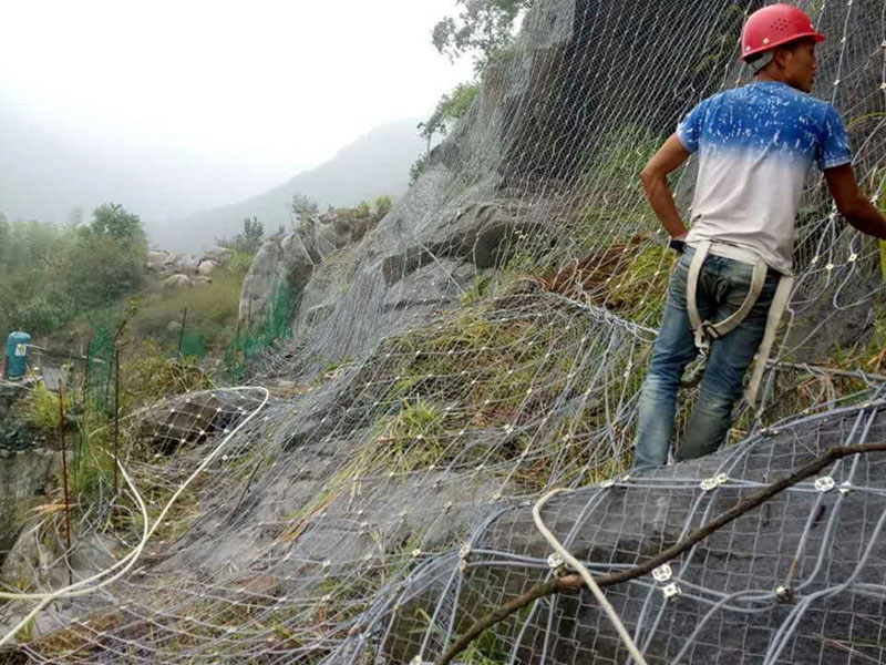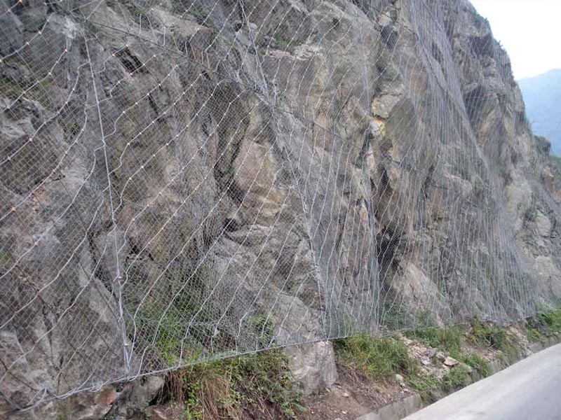 主動(dòng)防護(hù)網(wǎng)是目前最有效的邊坡防護(hù)產(chǎn)品,主動(dòng)防護(hù)網(wǎng)是將小片鋼絲繩網(wǎng)縫合在一起形成一張大網(wǎng),將整個(gè)山體罩住,防止落石滾落。即使非常陡峭的邊坡也同樣可以采用主動(dòng)防護(hù)網(wǎng)的方式進(jìn)行防護(hù),陡峭的山坡落石一旦風(fēng)化,就極有可能發(fā)生塌方、滾落,傷及到路邊的行人與車輛。采用主動(dòng)防護(hù)網(wǎng)進(jìn)行防護(hù),巖石風(fēng)化、滾落也只能在主動(dòng)防護(hù)網(wǎng)的控制范圍內(nèi)運(yùn)動(dòng)。